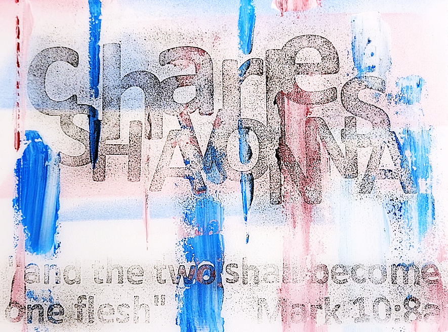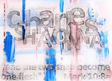 Two Shall Become One: Charles, Shavonna, is a piece of artwork drawing inspiration from Mark, Chapter 10, Verse 8a.