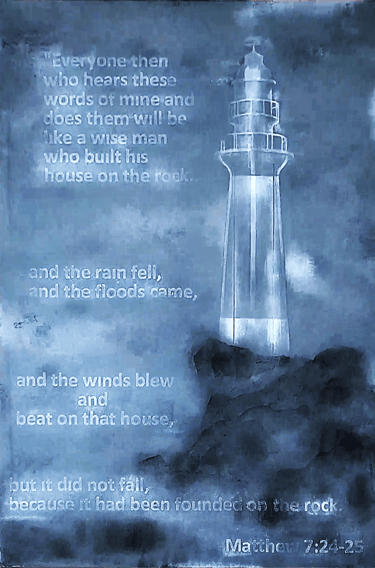 “Everyone therefore who hears these words of mine, and does them, I will liken him to a wise man, who built his house on a rock. The rain came down, the floods came, and the winds blew, and beat on that house; and it didn't fall, for it was founded on the rock.” Matthew, Chapter 7, Verses 24, 25.